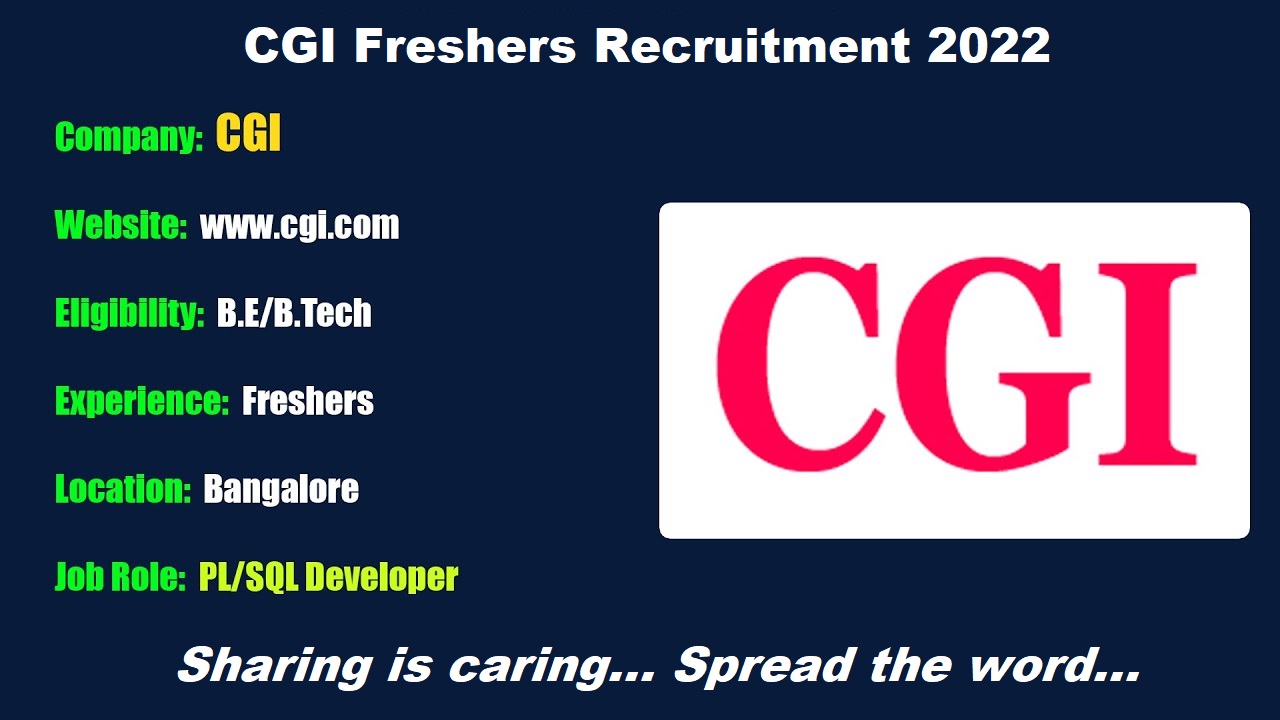 Freshers It Jobs Updates On Twitter Cgi Freshers Recruitment 2022 Profile Sql Pl Sql Developer Qualification Be Btech Location Bangalore Apply Now Https T Co I80nqbmtav Jobs Jobsearch Freshersjobs Jobseeker Recruitment2022 Itjobs